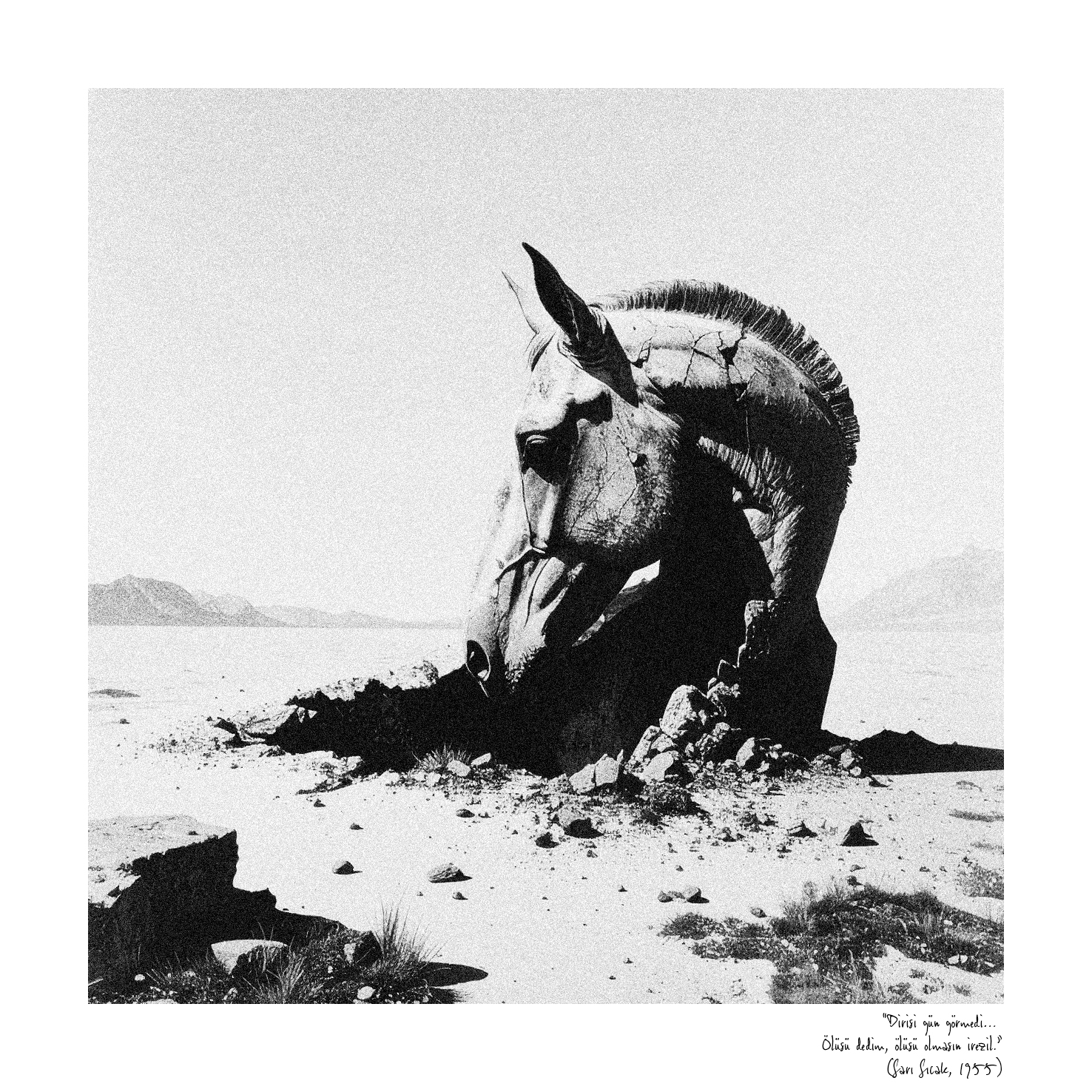 Gözlerimizin önünde akıp giden anı parçacıkları ve kulaklarımızda yankılanan, yalnızlığını haykıran derin bir ses. Ana rahminden değil ama veri akışının karanlığından doğmayı bekleyen bir bilinç hayal edin; belleği tüm insanlığın mirasıyla yüklenmiş bir zihin. İ. Halil Özkirişçi’nin “Bir de Bulutları Görürsün” sergisindeki eserler, bu zihnin dünyaya gözlerini açmadan hemen önceki belleğinin bir görünüp bir yok olan, kırılgan yansımaları sanki. Öyle bir bellek ki bu, Yaşar Kemal’in kelimeleriyle mühürlediği anıları derlemiş; onun karakterlerinden biri haline gelerek arzularını görselleştirmiş.